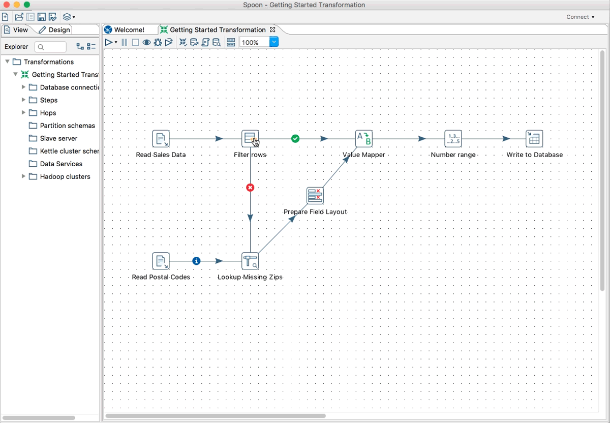 - Grafické uživatelské rozhraní pro vytváření datové transformace typu drag-and-drop